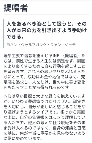 MBTIはINFJ(提唱者)