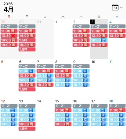 ・ご希望日の日時(11時/13時半/16時/18時半)