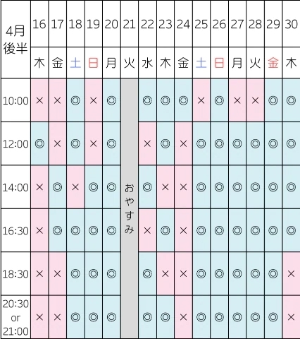 【4/9 10:00/12:00/18:30/20:30】