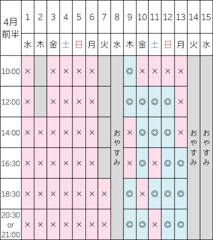 最短の空き枠はこちらです👇