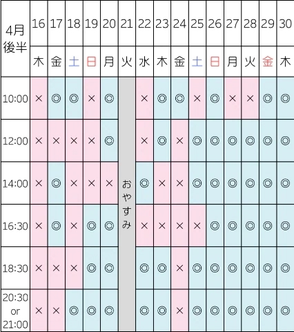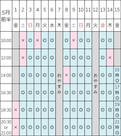 土日祝は特に早い時間帯(10:00/12:00/14:00)が