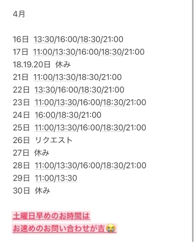 ※2回目以降のお客様は本指名様カウントのためお電話でのご予約でOK♡
