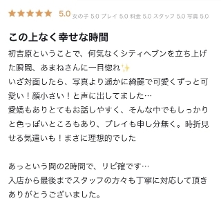 リピ確って言ってもらえたの、ほんとに嬉しいです😘また会えた時は、もっともっと仲良くなれたらいいなって思ってます!