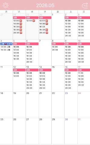 5月のシフトが決定しました💕
