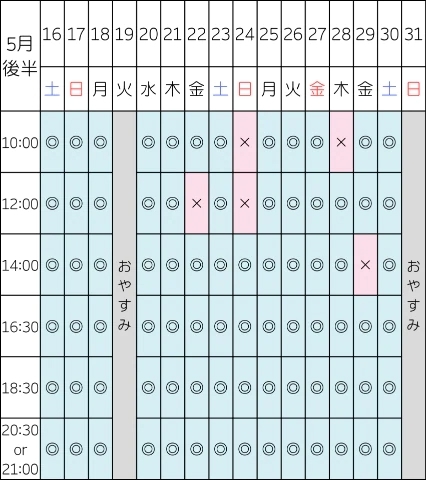 土日祝は特に早い時間帯(10:00/12:00/14:00)が