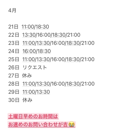 明日以降の空き枠🤍笑