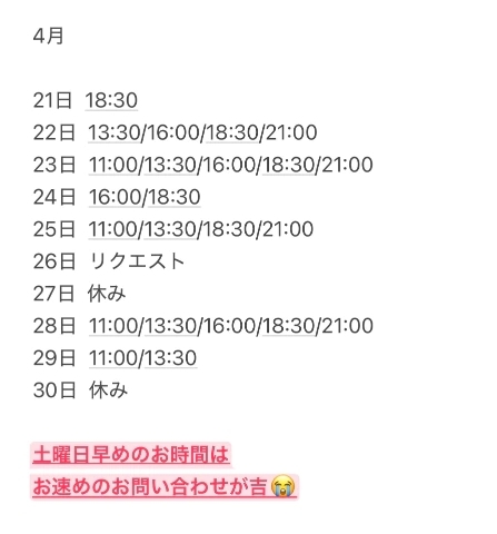 ♡ 1週間以上先のご予約が可能