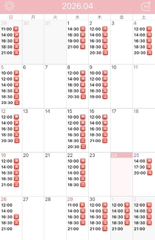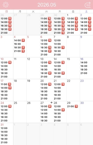 次回26日12時/14時/21時が空いてます。